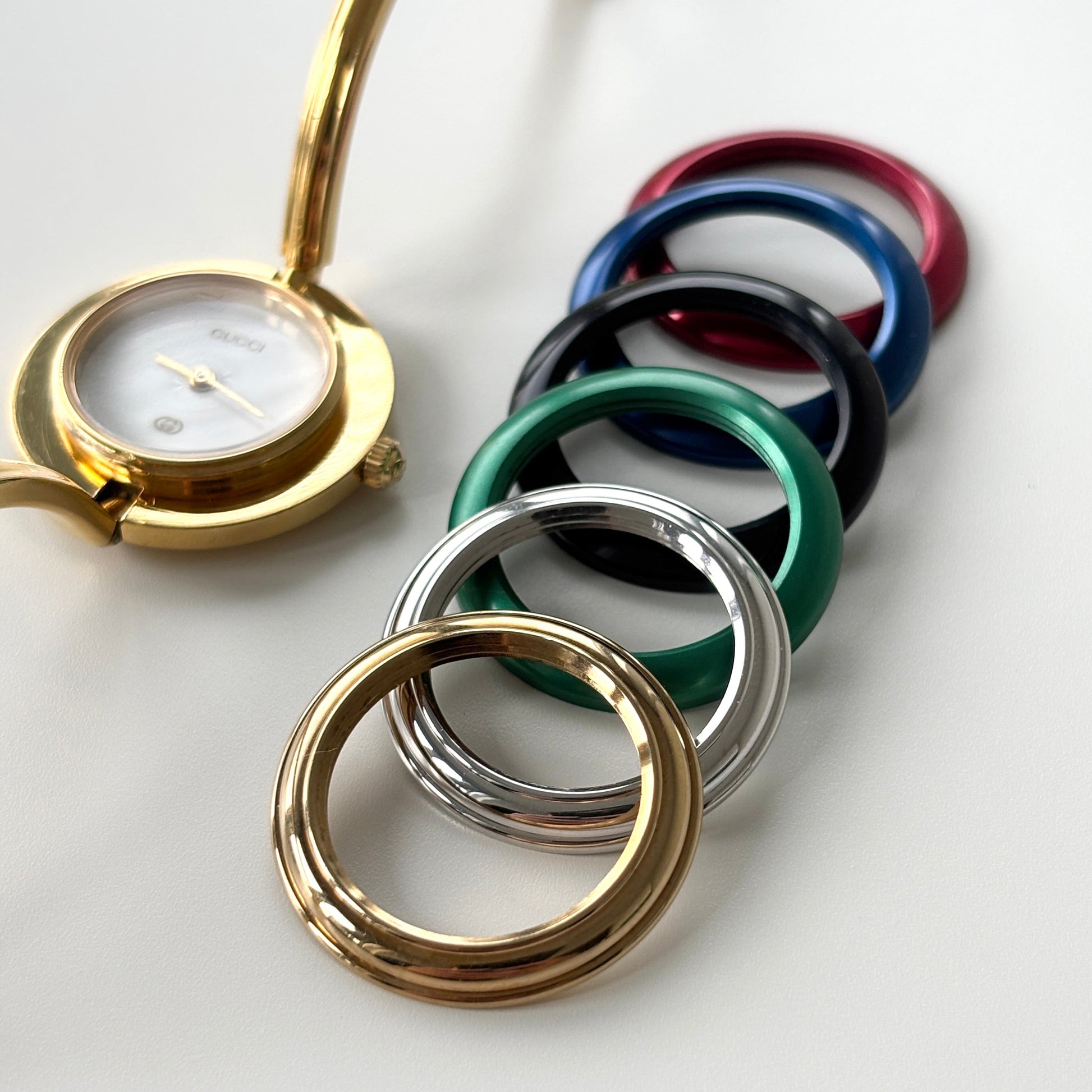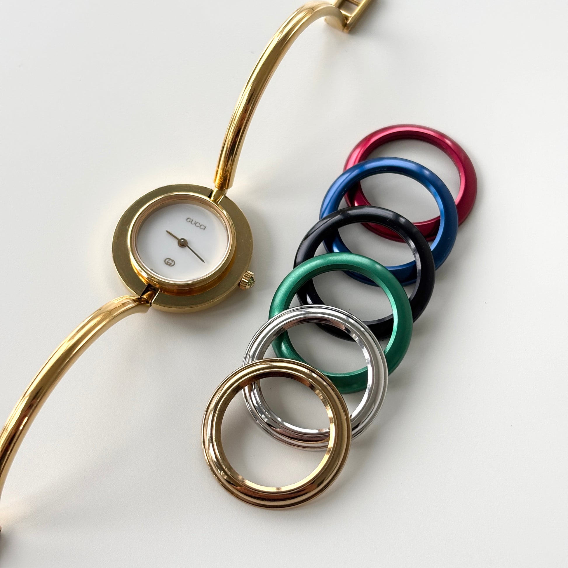 GUCCI Change Bezel Watch Bangle Box Set + 6 Bezels