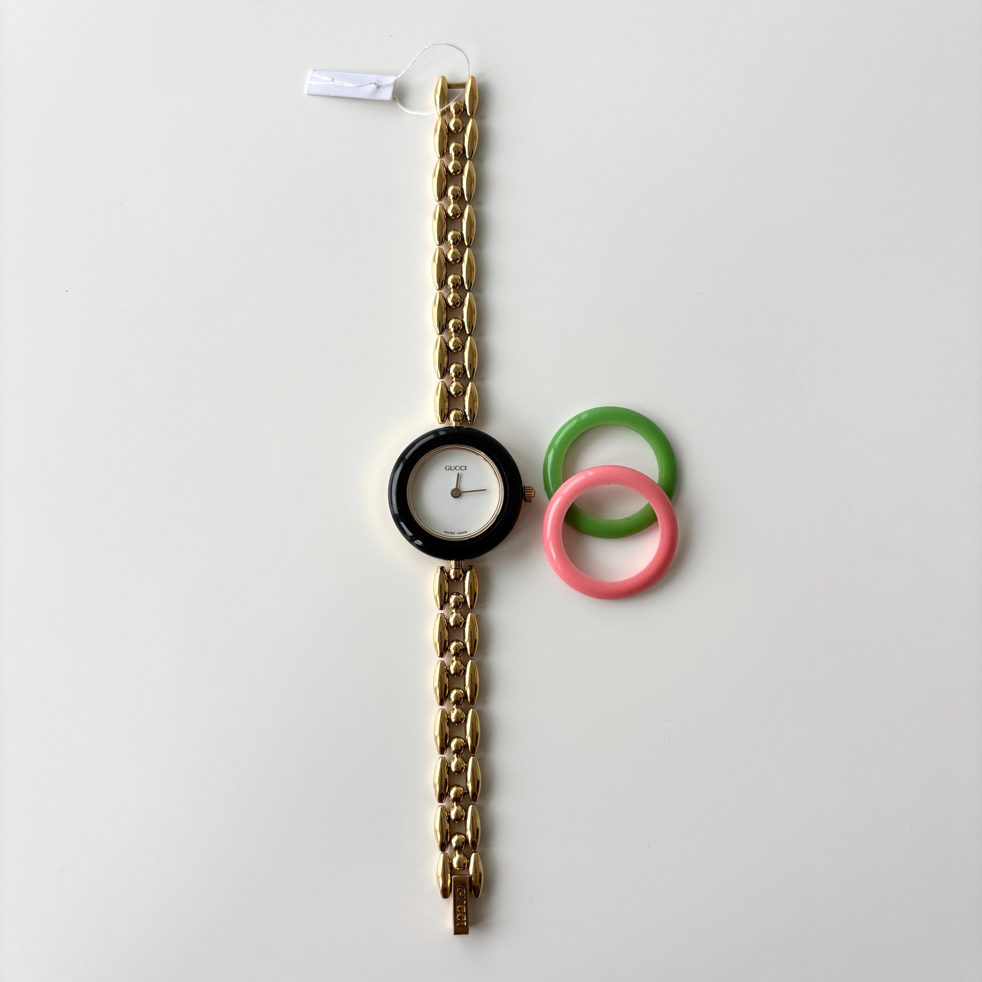GUCCI Change Bezel Watch Rice Link + 3 Bezels