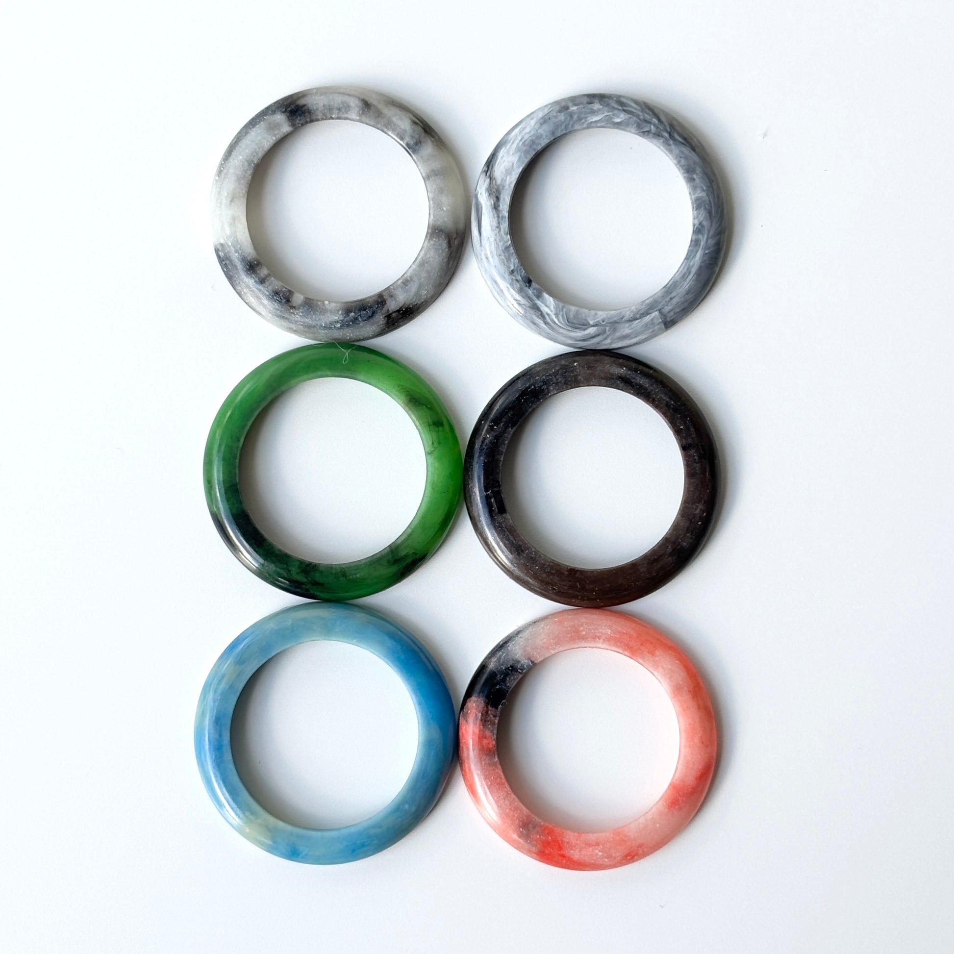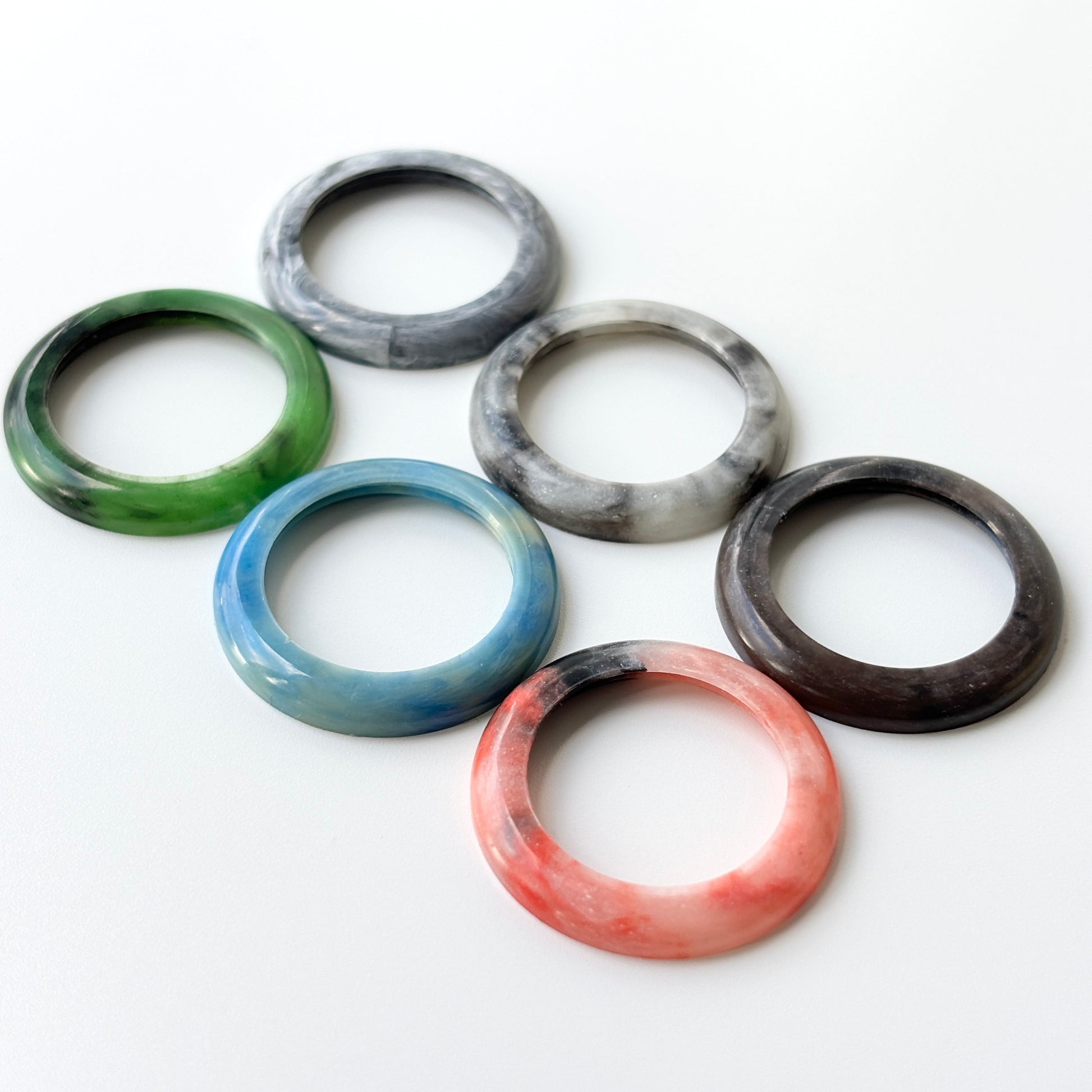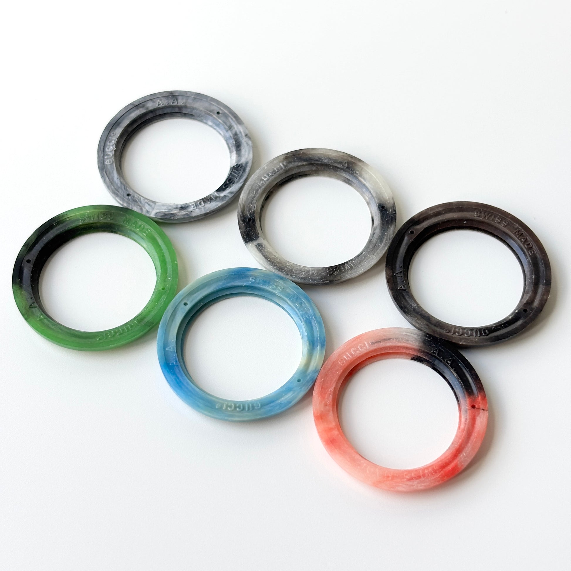 Authentic complete set of six plastic Gucci watch bezels in very good condition. The vintage "Renaissance" collection features a variety of ethereal gradients and marble and stone designs, and is rarely found complete on the resale market. This set includes the bezels only, watch not included.