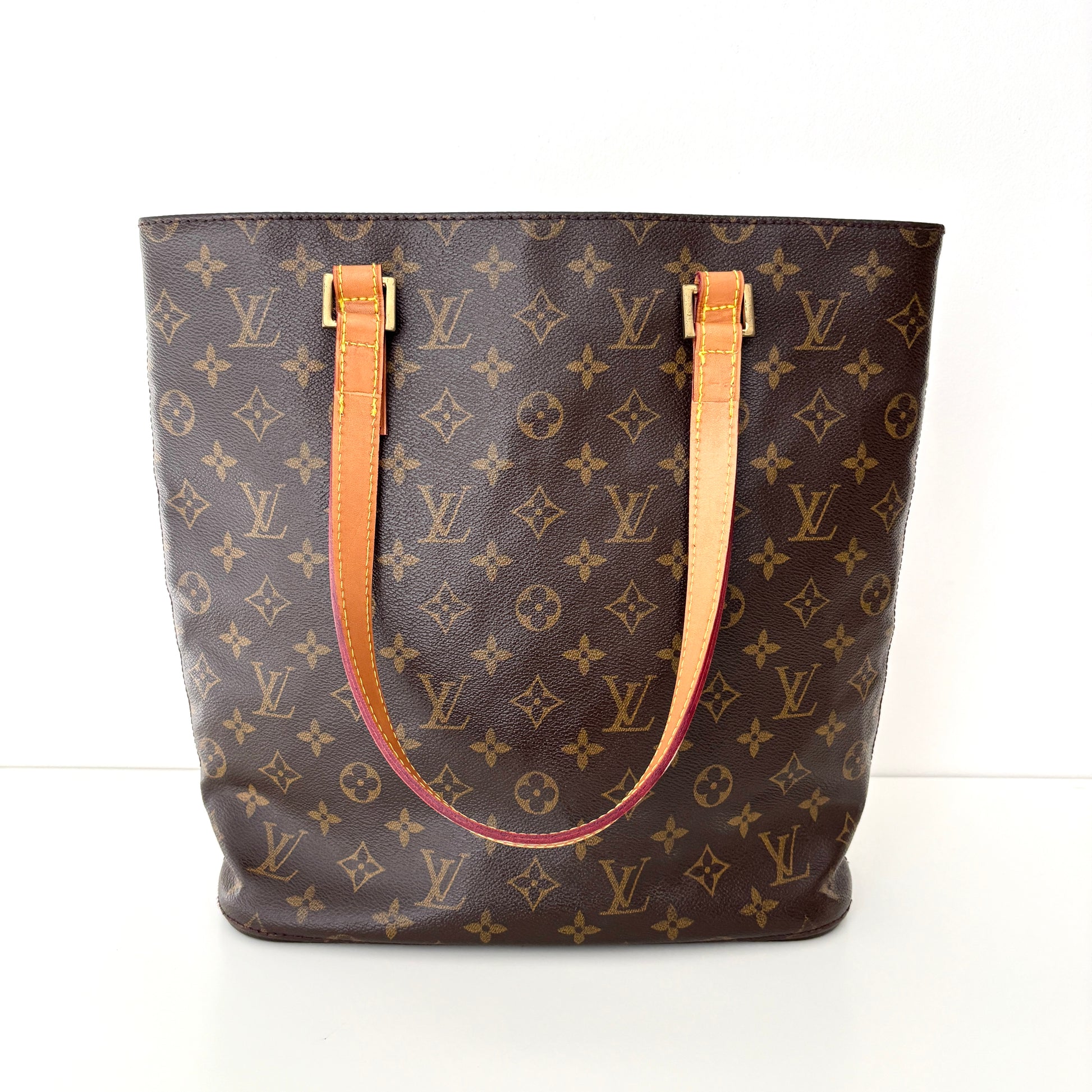Authentic vintage 2001 Louis Vuitton Vavin GM tote bag in brown monogram coated canvas with gold tone hardware with tan leather handles. A spacious and practical bag. Made in France.