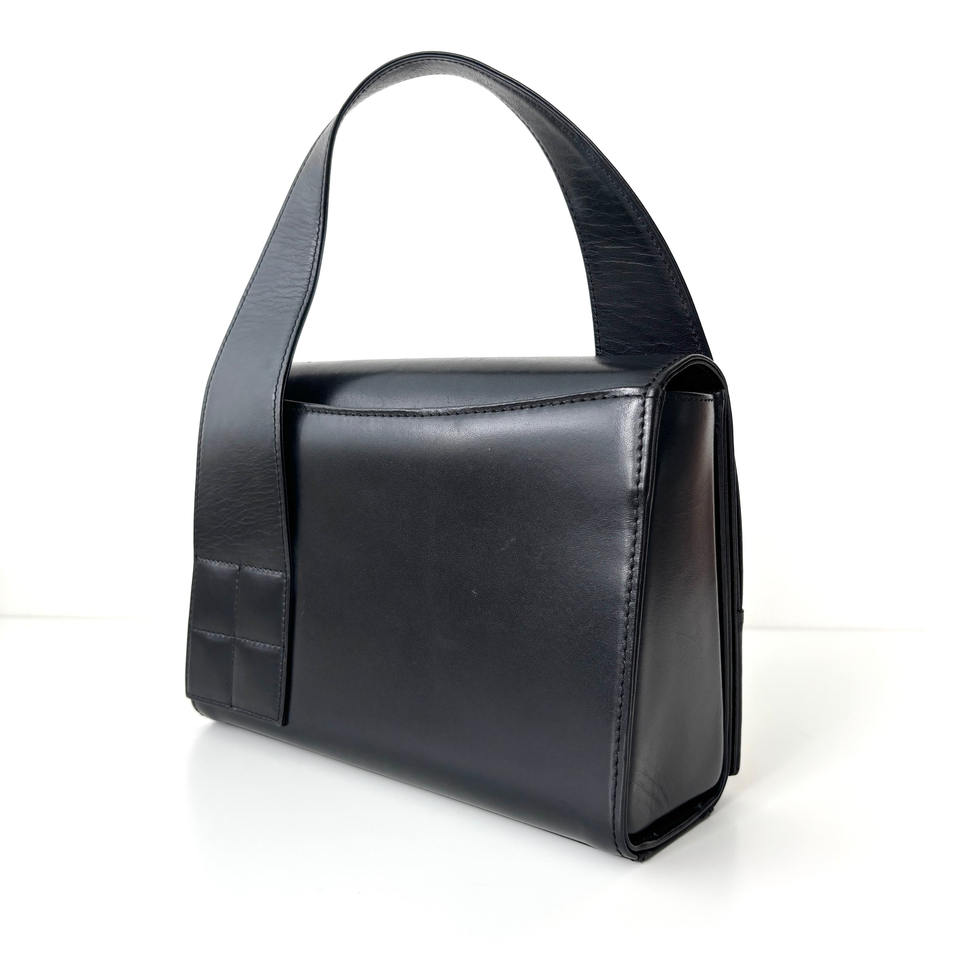 Authentic vintage Givenchy Leather Handbag featuring a minimalist boxy structure and twisting flat handle.