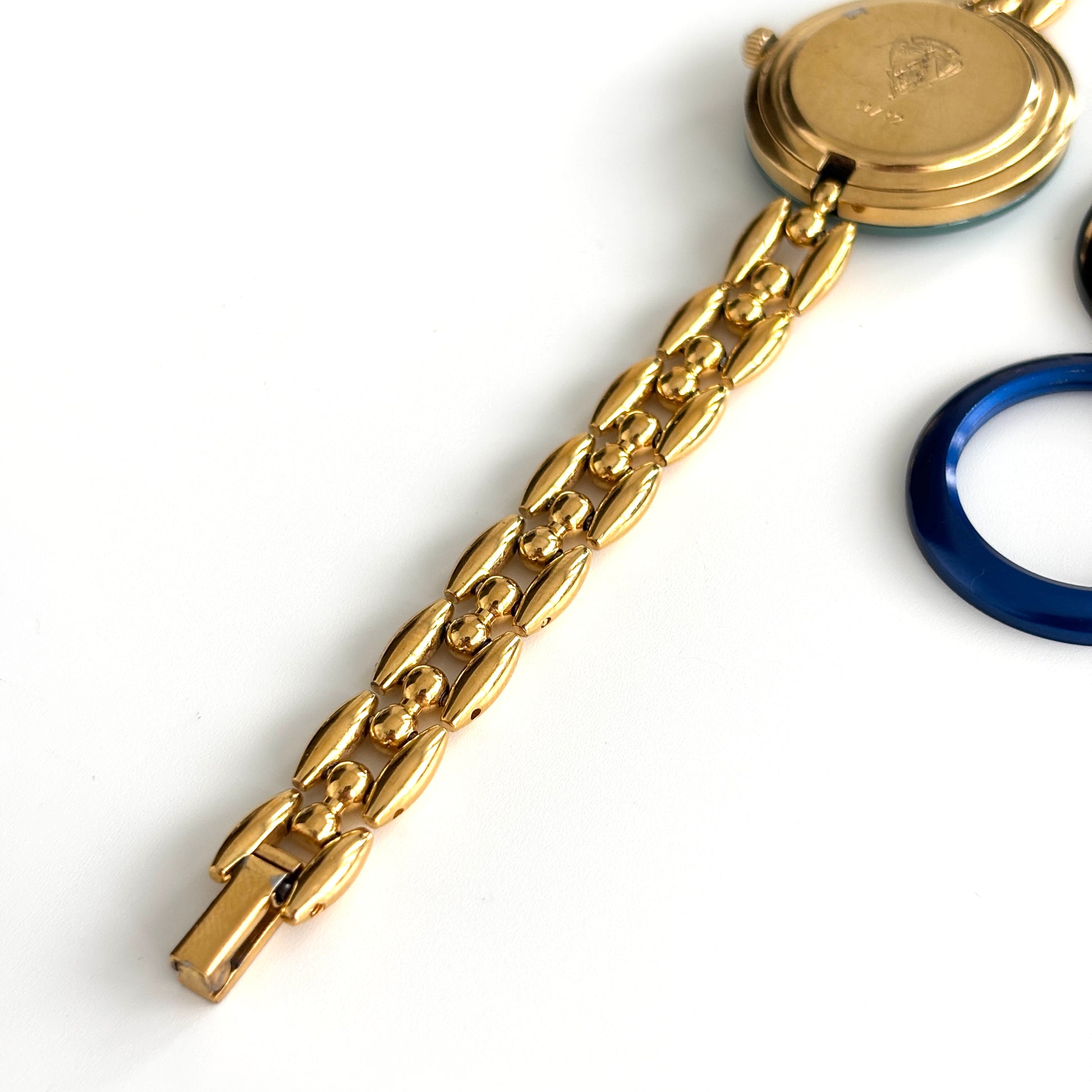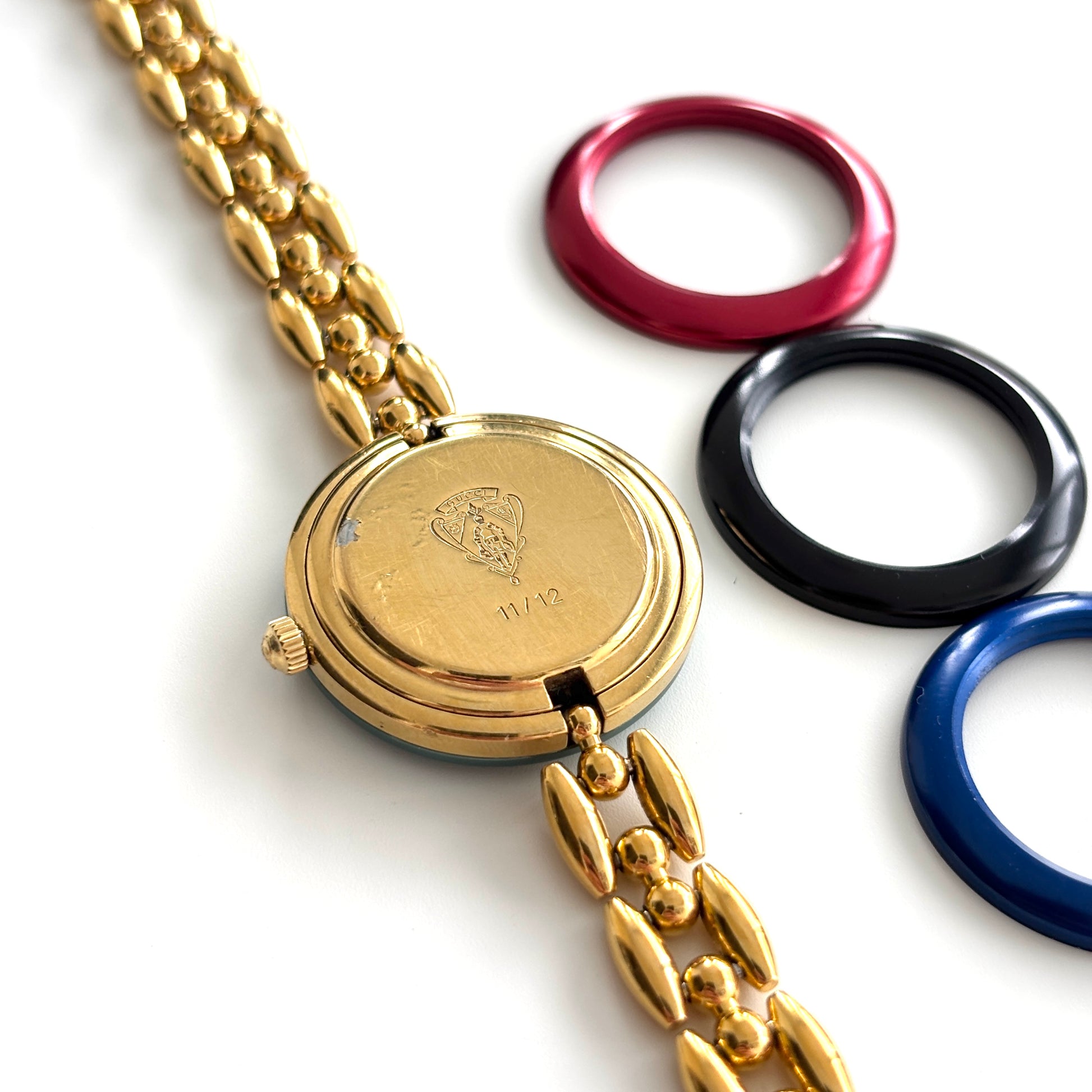 Authentic vintage Gucci Timepieces Change Bezel 11/12 watch with 4 interchangeable metal bezels. Made in Switzerland.